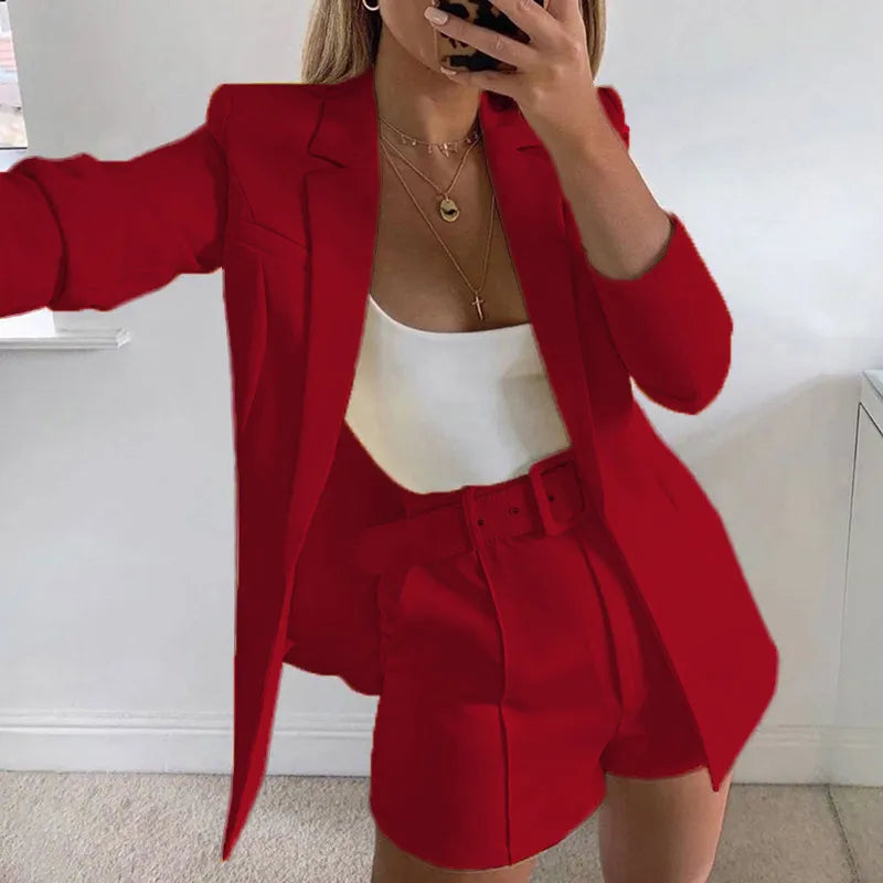 CELIA ELEGANTE CONJUNTO DE PANTALÓN CORTO Y BLAZER DE LINO PARA MUJER