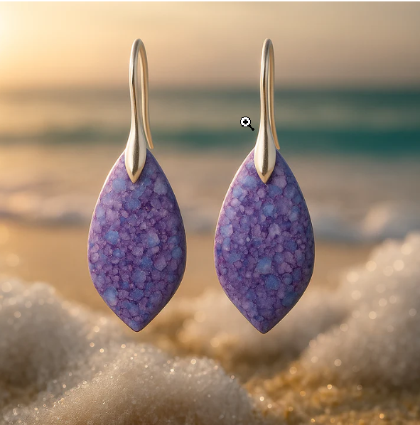 Die zarten Lavendel- und Lilatöne der Ohrringe Mirelda erinnern an die Reflexionen des Himmels beim Sonnenuntergang an den Stränden der Camargue. Jedes Paar ist handgefertigt und einzigartig, mit sorgfältig ausgewählten Steinen, die die Schönheit der Natur widerspiegeln.