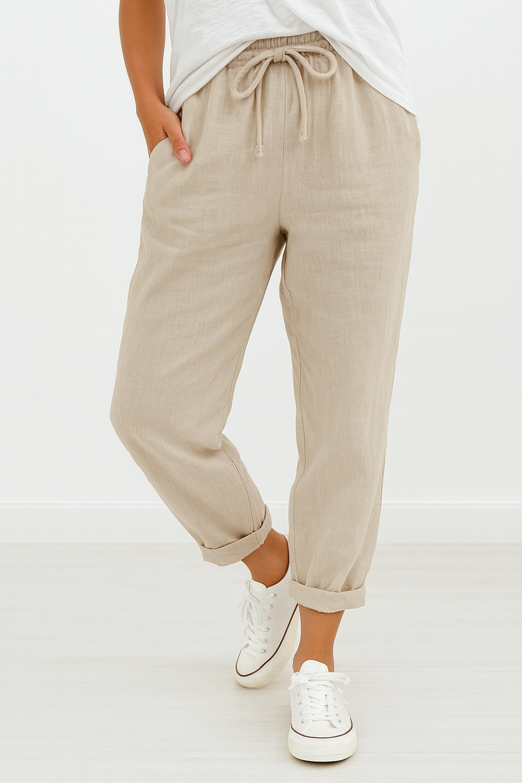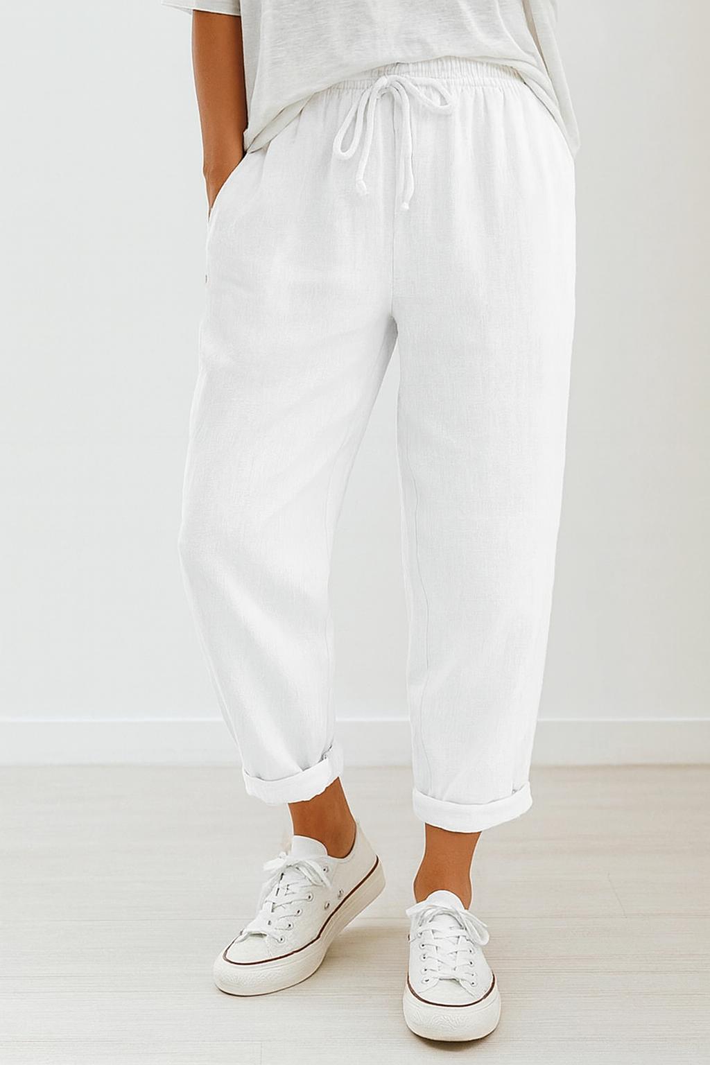 PANTALONES CASUALES LISOS CON CORDÓN Y BOLSILLOS