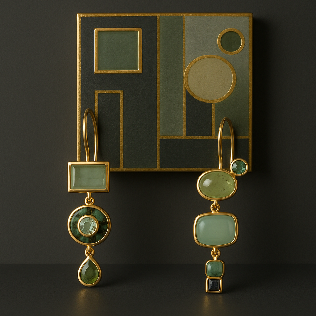Entdecke die Grünen Hängehänger "Salle", inspiriert vom geheimen Herzen eines unberührten Waldes. Diese Ohrringe fangen die Nuancen des intensiven Grüns ein, die an den erleuchteten Nebel des Morgenraus erinnern.