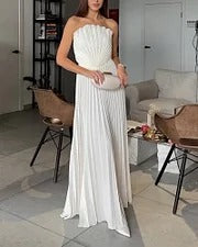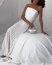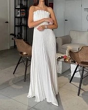 El Vestido Alba™ es la definición de sofisticación y frescura. Con un diseño plisado que aporta movimiento y elegancia, y aberturas estratégicas que realzan la silueta, este vestido blanco es perfecto para eventos formales, celebraciones o cualquier ocasión donde desees un look impecable y sofisticado.